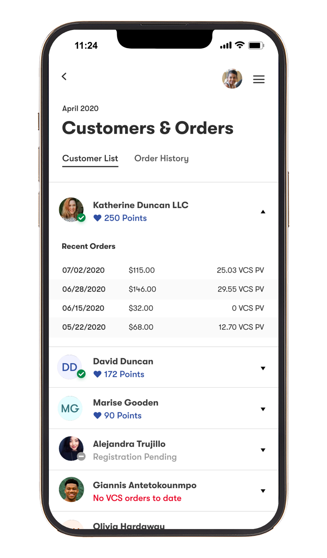 Keep track of your most recent customers’ orders, rewards, and registrations status.